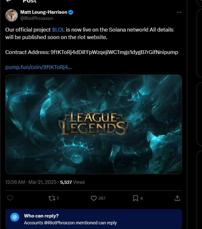 Whether we get a League or Riot-backed crypto in the future is a topic of discussion for another day. Given how crypto has gained steam over the years, we won’t rule anything out. But if you’re in March 2025, rest assured that there is no League cryptocurrency, and any post you might see on social media is a scam waiting to trap as many folks as possible. The best job will be to immediately report such a post so that it can be taken down immediately.